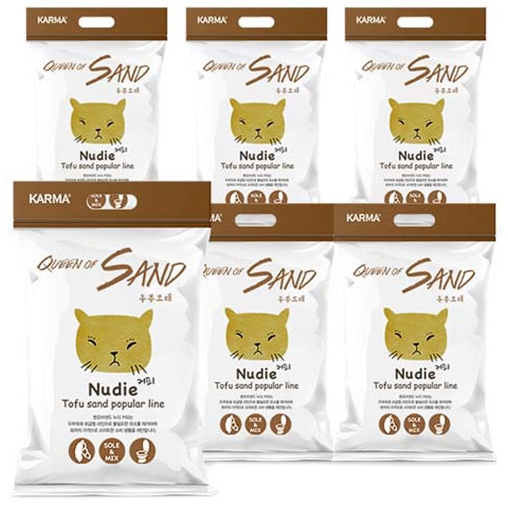 카르마 응고형 퀸오브샌드 누디 고양이 두부모래, 3kg, 6개, 커피