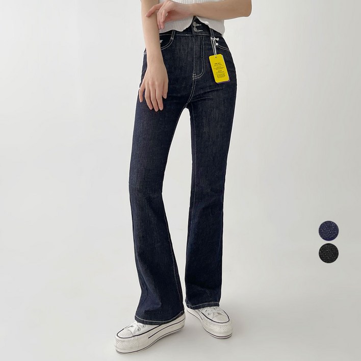 플랜데이 여성용 3기장 투버튼 이염방지 논페이드 부츠컷 데님 롱 팬츠