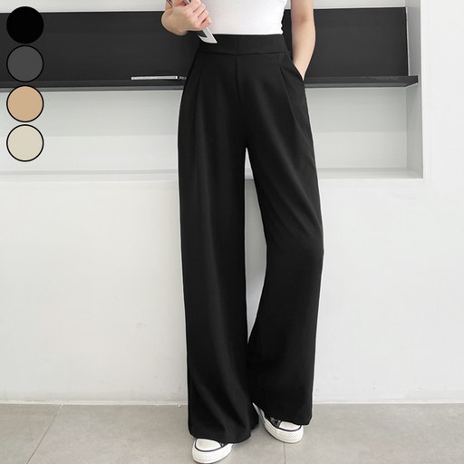 가비진 여성용 숏기본롱 기장선택 스판 좋은 핀턱 밴딩 일자 와이드 팬츠 키작녀 키큰녀 바지 빅사이즈까지