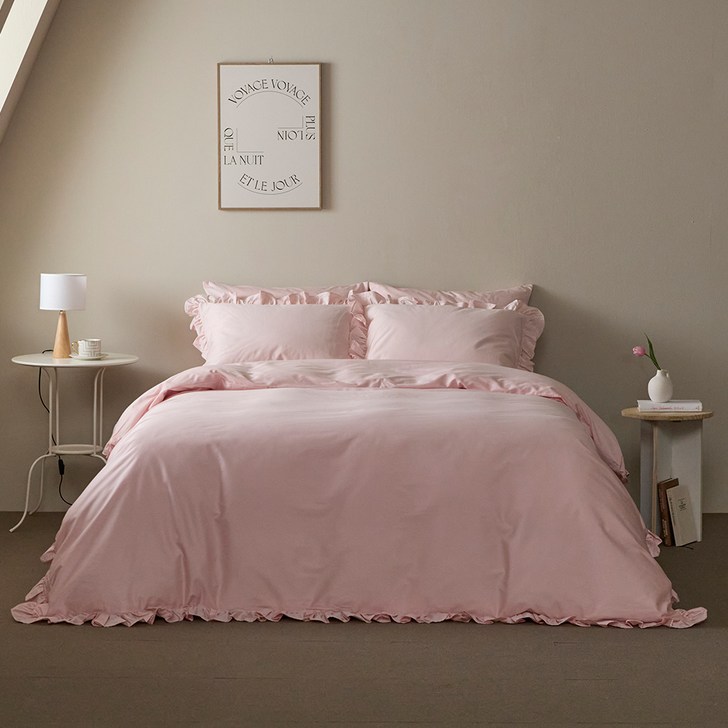 바운티풀 60수 순면 프릴 이불커버, 핑크