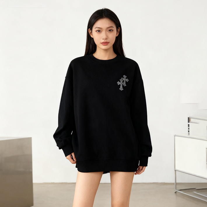 여성 맨투맨 추동 커플룩 긴팔티 모던 자수 프린트