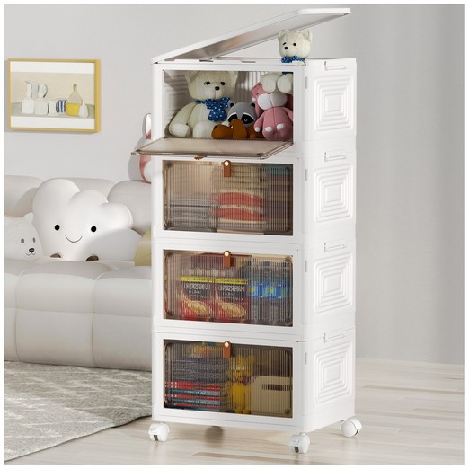 Kipnos 폴딩 대용량 리빙박스 수납장 대용량 수납 정리함 접이식 보관함 다용도 수납함 플라스틱 수납함 사물함 정리함 리빙박 스수납박스 대형가정용 장난감 수납장 옷정리함, 화이트, 4개
