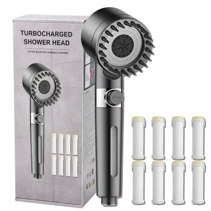 핏룸 고수압 3단조절 수압상승 필터 샤워기헤드, DARK GRAY, 1개