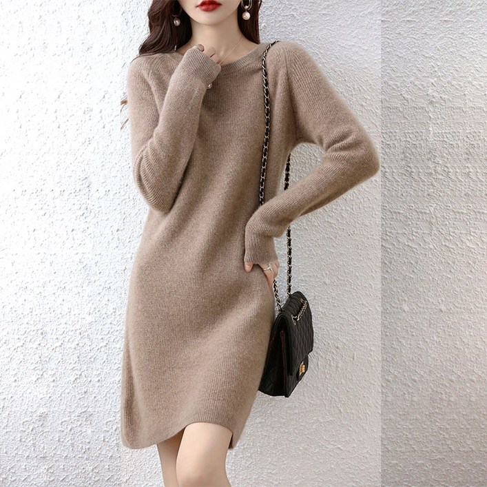 아이엠몽 여성 기본 골지 니트 미디 원피스