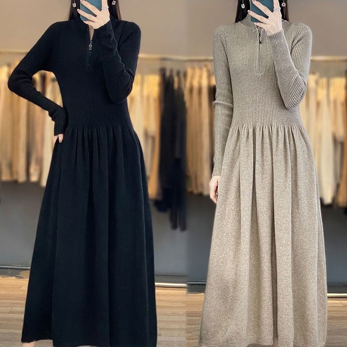 가을원피스 패션 반집업 롱니트 하객원피스 가을 겨울 날씬해 시크 맥시 스웨터