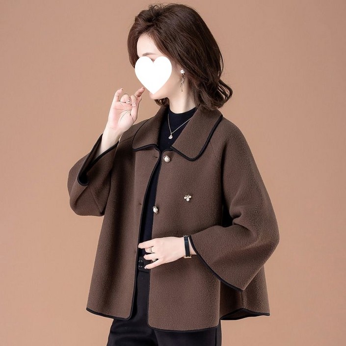 POMTOR 중년 여성 신상 외투 캐주얼 짧은 카라 상의