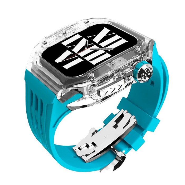 다비드 애플워치용 호환 플립형 일체형 스트랩 9 8 7 se 울트라 호환, 10.투명케이스실버블루스트랩, 1개