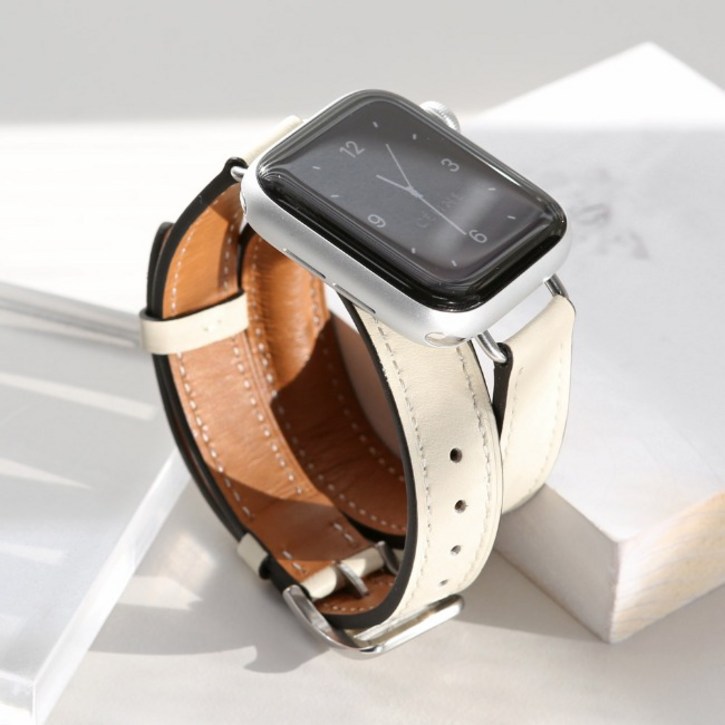 애플워치 호환 슬림 더블투어 가죽 스트랩 7 6 5 SE 40 41 44 45mm, 크림, 1개