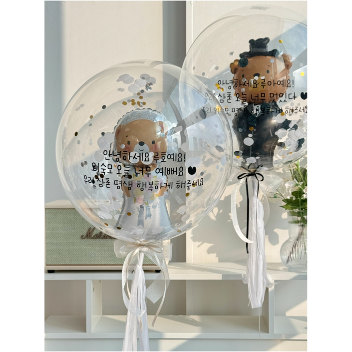 완제품 웨딩곰돌이 헬륨 화동풍선 브라이덜샤워 웨딩촬영 레터링소품, 1개