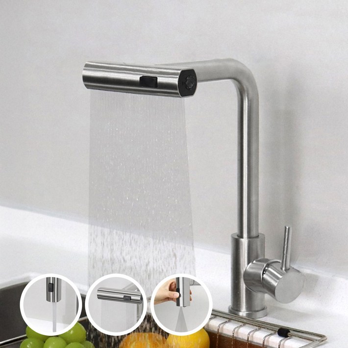 로딘 와이드 3way 폭포수 무광 씽크수전 폭포 주방수전 씽크대 수도꼭지 ODIN262W, 1개