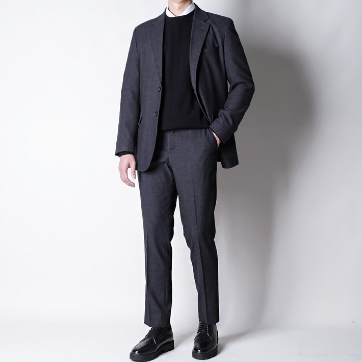 디아웃핏 남성 겨울 울 정장세트 히든 밴딩 수트 캐주얼 기모 면접 결혼식