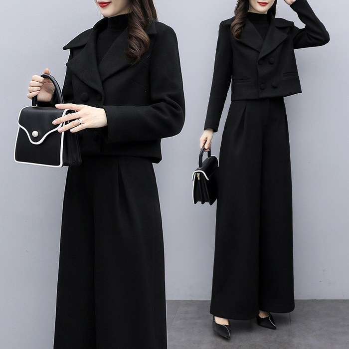 스타일닥터 가을 겨울 모직 투피스 세미 와이드 팬츠상의 직장인 정장 세트