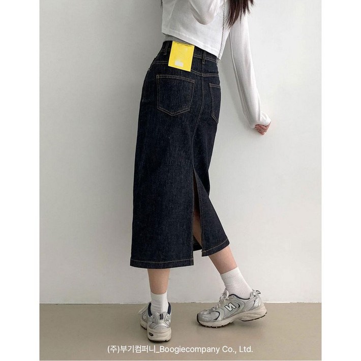부기샵 여성 생지치마 루시 데님 트임 롱 스커트