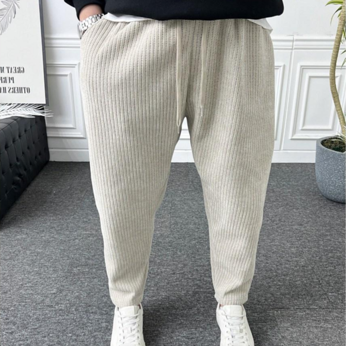 남자 니트바지 스퀘어체크 밴딩 스판 벌룬핏 배기팬츠