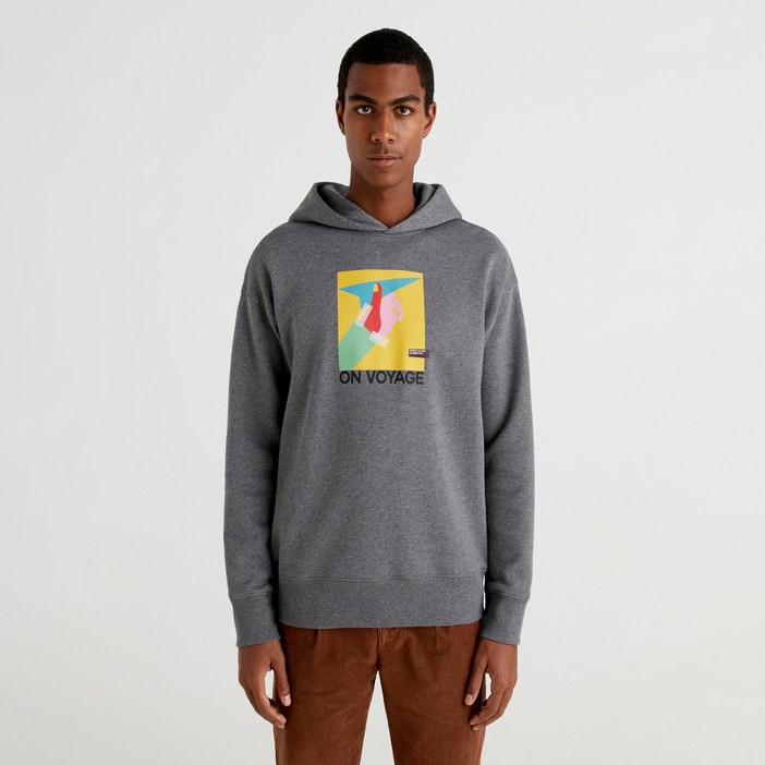 베네통 면혼방 그래픽 후드 티셔츠 3J73U200L507