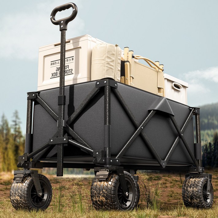 AORAN 캠핑카트 캠핑웨건 광폭타이어 왜건 다기능 아웃도어 캠핑 웨건, 블랙, 1개