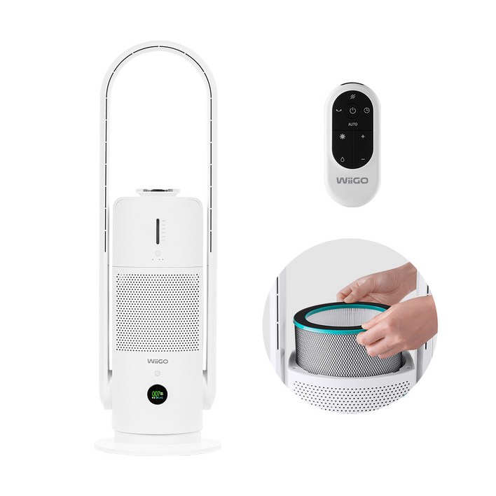 위고 올인원 팬타워 청정가습기 공기청정기 UV살균 화이트 앱연동 간편세척 가정용 사무실용 인테리어 활용 습도조절 초음파식 사계절용, WHFNAH 화이트