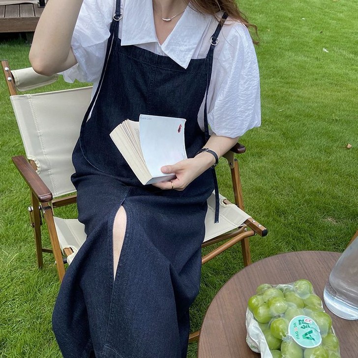 Chephie 여성용 여름 신상 데님 멜빵 원피스 스트랩 원피스
