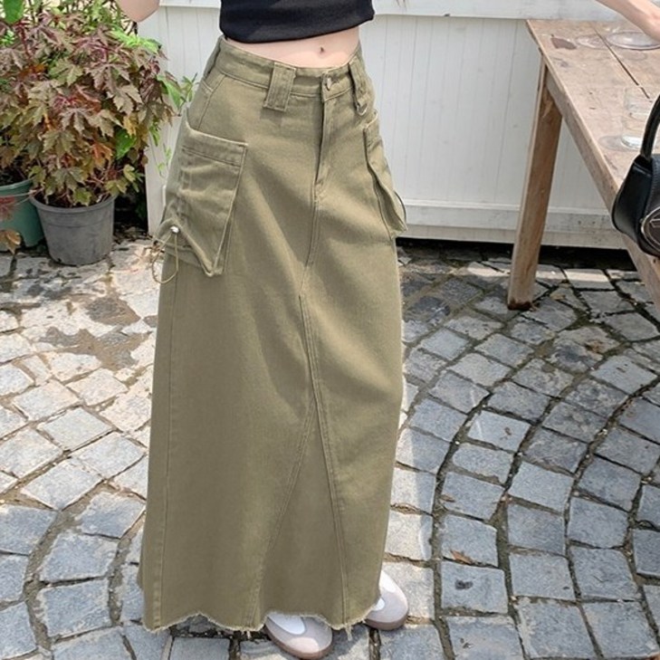 스파르 뒷트임 밑단헤짐 H라인 카고 롱 스커트