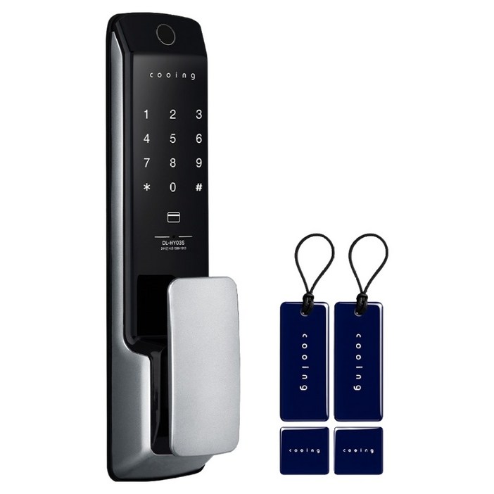 쿠잉 손잡이 있음 지문인식 푸시풀 디지털 도어락, DLHY03S, 방문설치
