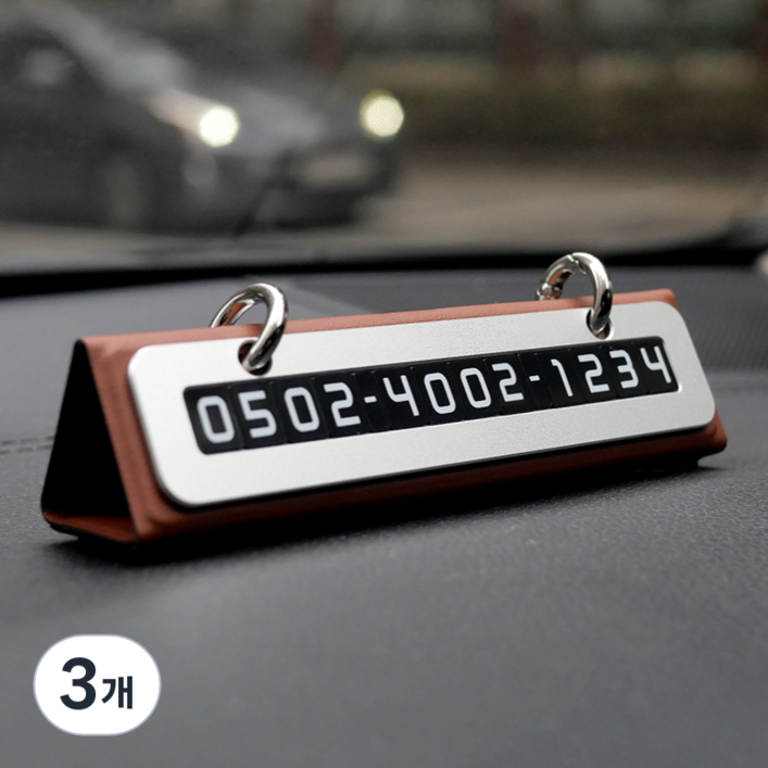 큐알미 듀얼 주차번호판 자동차 전화번호판, 3개, 브라운